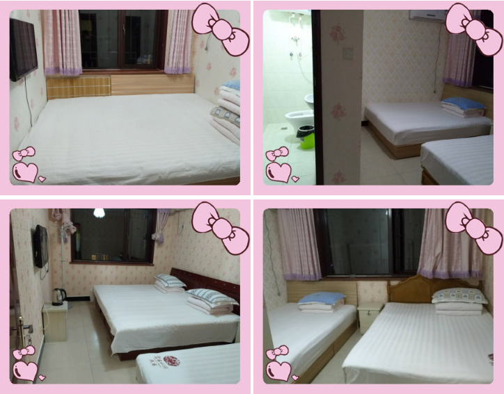 客房环境干净整洁、卫生,床单被罩一客一换,配有电视、空调、热水器,24小时热水!