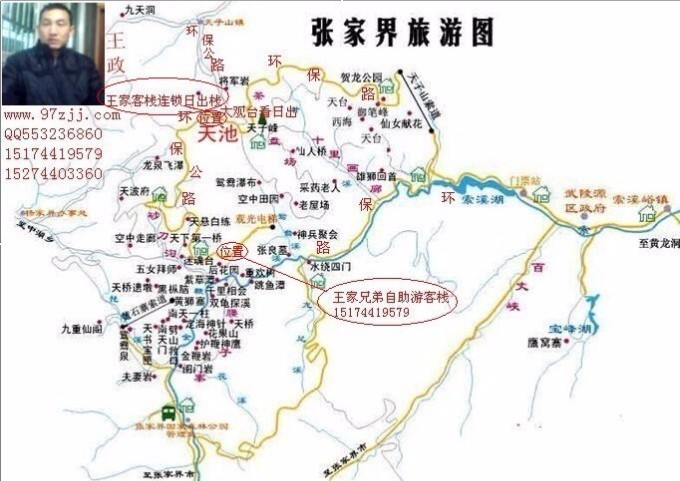 客栈简介:客栈坐落在海拔1200的天子山大观台-天池旁,大观台 是景区看日出最好的位置,客栈地理位置优越,坐景区环保车可向周边景点出游。客栈于2013年新装修,有16个房间可住40余人。目前可以说是整个张家界 景区内家庭旅馆中条件最好的;这里家庭气氛浓郁,每一个游人来到这里都象在自己家里一样,没有陌生的感受。这里气氛活跃,很多互相不认识的游人都可以相互 交流旅途心得,从陌生成为朋友。更主要的是:这里是驴友集中营,很多的结伴旅行都是从这里开始的。