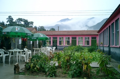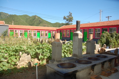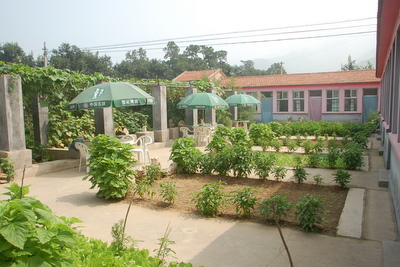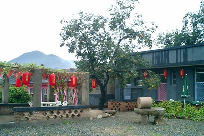 碓臼峪-好人家山景度假园四面环山, 院内种植着有机蔬菜和各种瓜果,乡村气息深浓。坐在餐厅就可以欣赏到山区美景和田园风光。如果你坐在院子里就更能体验到田园生活了。