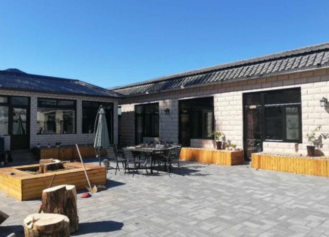 民宿尚未经营、但周边配套设施齐全,停车场、西餐厅、小集市都在院门口。